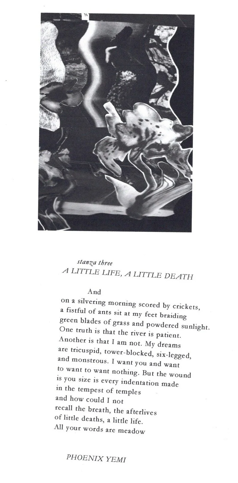 This is an excerpt from a longer poem about desire, about a wanting that feels monstrous, unwieldy, and the ache of knowing how far my needs stretch beyond what you can offer. These thoughts open small wounds and poke holes in the world we're building together, and if I could, I'd step outside of myself and divorce our dreams from a history that bears down on every choice we make. There is no freedom in love. Forgive me. But know that in every lifetime, I'd choose him.